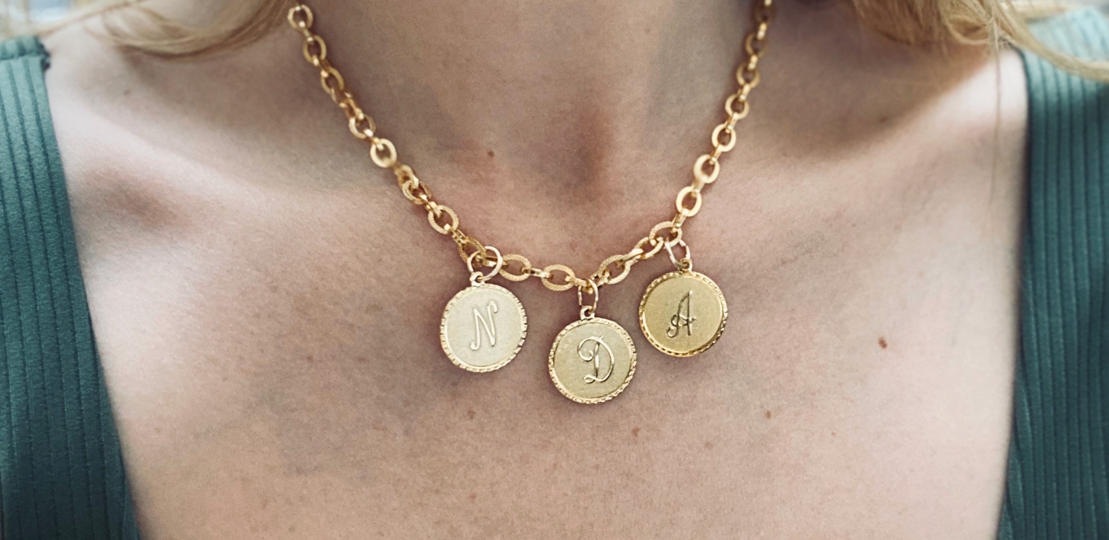 Collier personnalisable avec 1, 2 ou 3 médailles initiales.